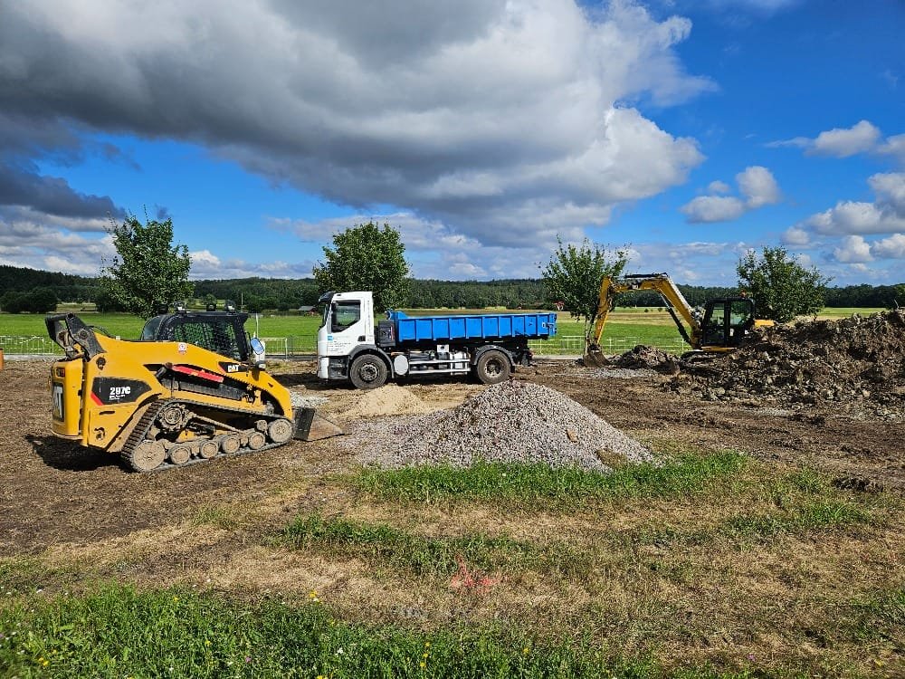 V rámci našich služeb nabízíme také pronájem strojů s obsluhou na komplexní zemní práce a přepravu nákladu pomocí strojní techniky.